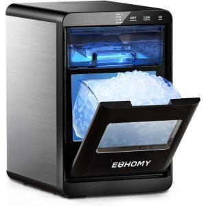 EUHOMY Nugget Ice Maker Countertop, 44Lbs/24H Pebble Ice Maker Machine, Self-Cleaning Pellet Ice Machine with Ice Scoop&Basket, Sonic Countertop Ice Machine for Home/Kitchen/Office(Black)