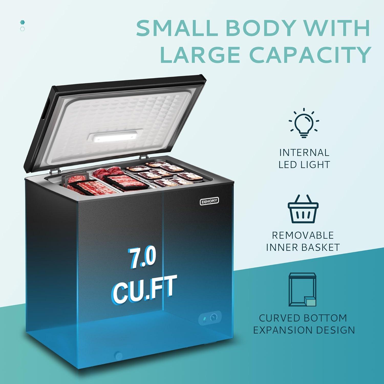 - Our holiday sale features the best deals on EUHOMY 3.5 Cu.Ft Chest Freezer with Removable Basket, Small Deep Freezer Adjustable 7 Thermostat, Quiet Mini Freezer Free-Standing Top Door, Energy Saving for Apartment/Garage/Basement/Dorm/Home,Black(3.5 CU.FT) and accessories. Shop now and save!