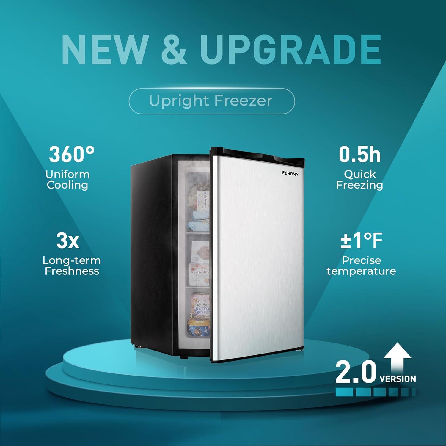 - Score big savings on EUHOMY Upright freezer, 2.1 Cubic Feet, Single Door Compact Mini Freezer with Reversible Stainless Steel Door, Removable Shelves, Small freezer for Home/Dorms/Apartment/Office, Silver(3.5 CU.FT (With Wheels)) during our back-to-school sale. Limited quantities available.