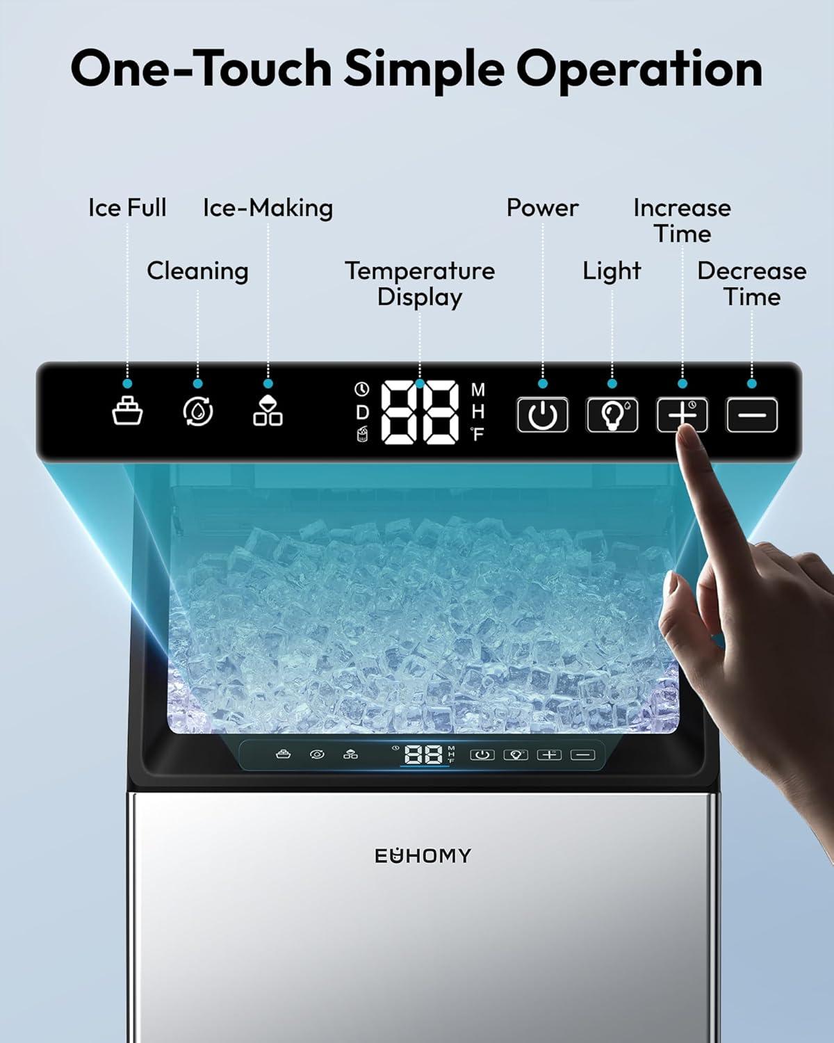 EUHOMY Commercial Ice Maker Machine, 200lbs Daily Output, Under Counter ice Machine with 65lbs Ice Storage Capacity, Perfect for Home/Bar/Restaurant/Outdoor Activities(Stainless Steel)(100lbs/24H)