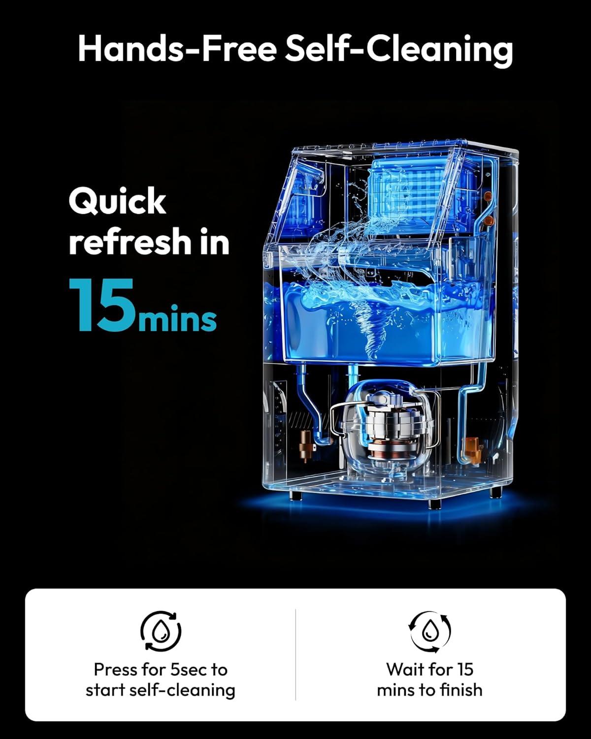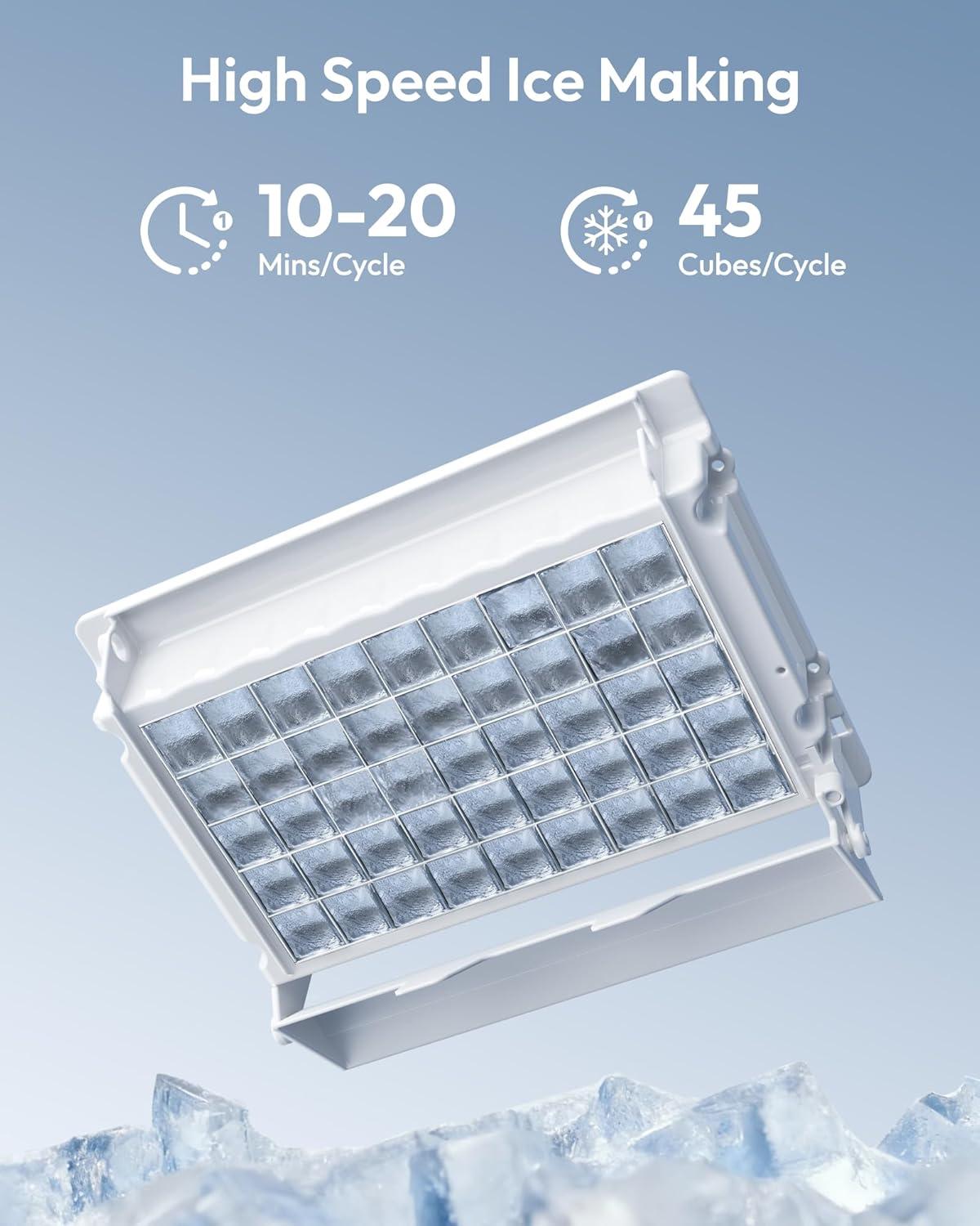 EUHOMY Commercial Ice Maker,105lbs/24H,Stainless Steel Under Counter Ice Machine with Water Filter,33lbs Storage Capacity, 45 Cubes in 8-12 Mins, Freestanding Ice Machine for Home/Bar/Cafe/Restaurant(105lbs/day)