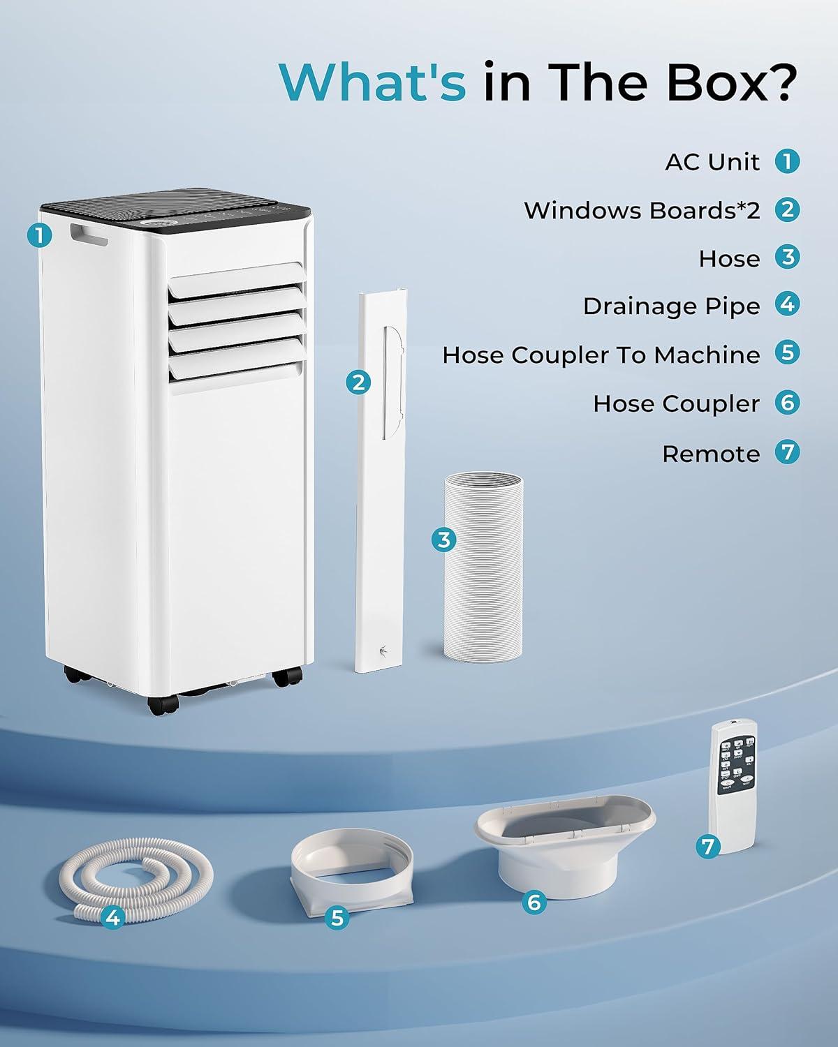 𝐄𝐚𝐬𝐲 𝐭𝐨 𝐈𝐧𝐬𝐭𝐚𝐥𝐥: Equipped with 360° wheels and ergonomic hidden handles, this compact AC unit can be easily moved. Move the portable AC to any space, securely attach the included extendable hose and customizable window adapter, and you're ready to go. 𝐈𝐌𝐏𝐎𝐑𝐓𝐀𝐍𝐓 𝐈𝐍𝐅𝐎𝐑𝐌𝐀𝐓𝐈𝐎𝐍: This AC's window kit includes adjustable panels, but the window kit can not provide installation of windows between 25.6 in and 36 in. If your window falls within this range, you may need to trim/cut the mounting kit to ensure proper installation and perfect sealing
