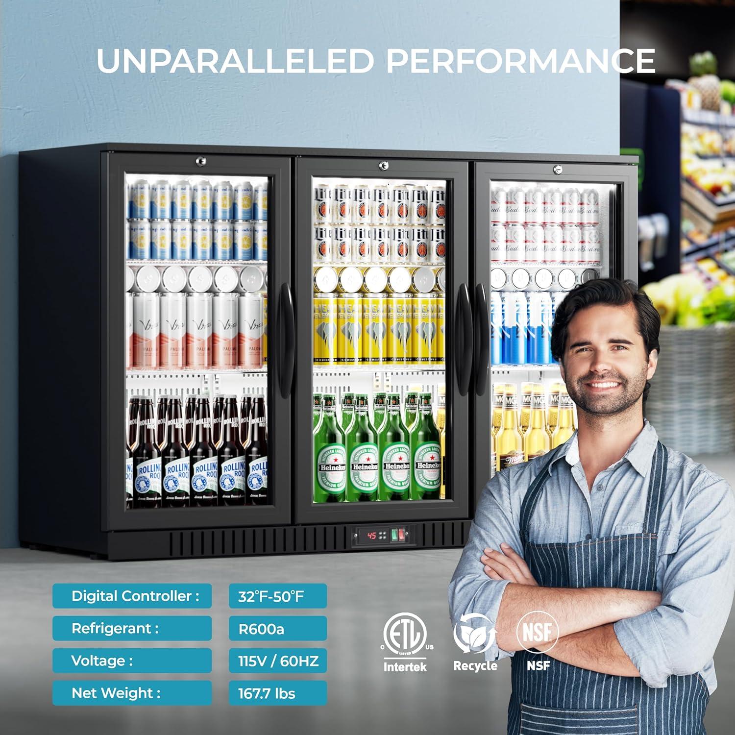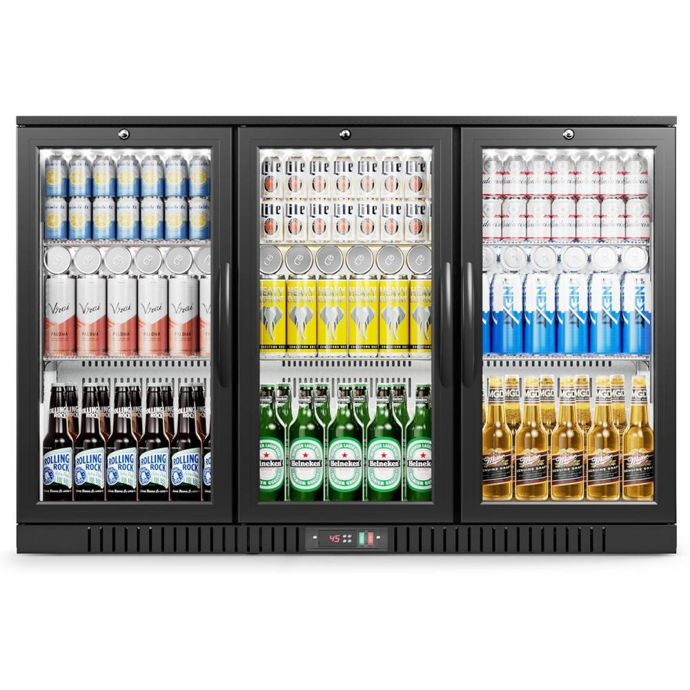 EUHOMY 11.4Cu.Ft Back Bar Cooler With 3 Glass Doors, 53″ Counter Height Beverage Refrigerator with LED Lighting, Commercial Display Bar Fridge for Beer,Soda Drinks,Wine, Black(3 Door Back Bar Cooler)