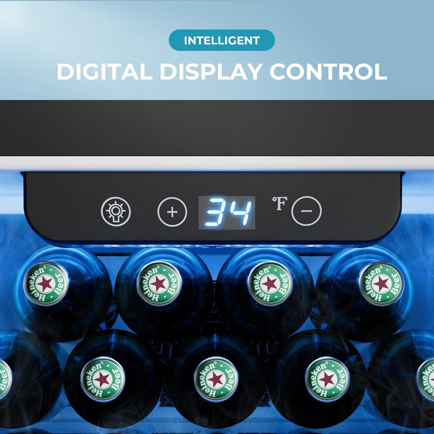 【Stable temperature】This wine chiller features one-touch temperature control, ranging from 40°F to 61°F. Unlike traditional semiconductor refrigeration, this mini refrigerator uses advanced compressor refrigeration technology that ensures stable temperature control and keeps beverages in optimal condition at all times, no matter how the environment changes.