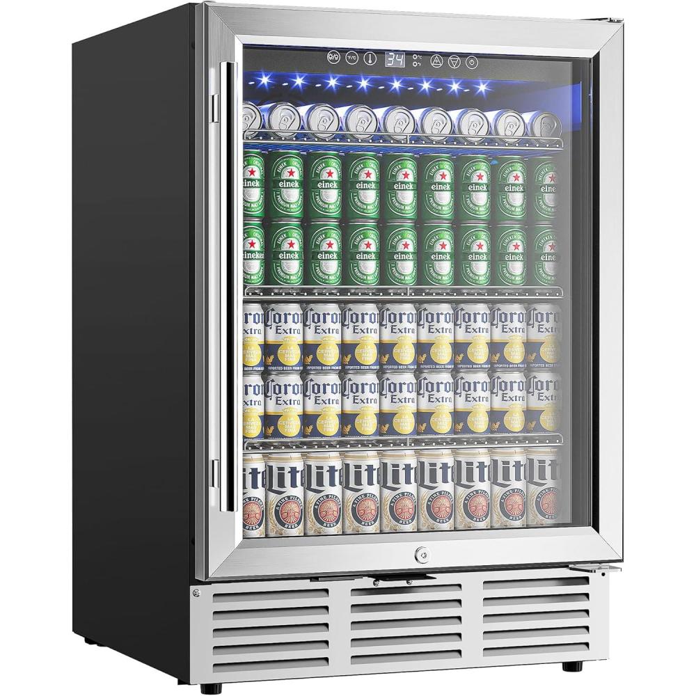 EUHOMY 24 Inch Beverage Refrigerator, 180 Can Built-in Beverage Cooler, Under Counter Beer Fridge with Glass Door for Soda, Water, Wine – For Kitchen, Bar or Office(24″ Undercounter Beverage Refrigerator)