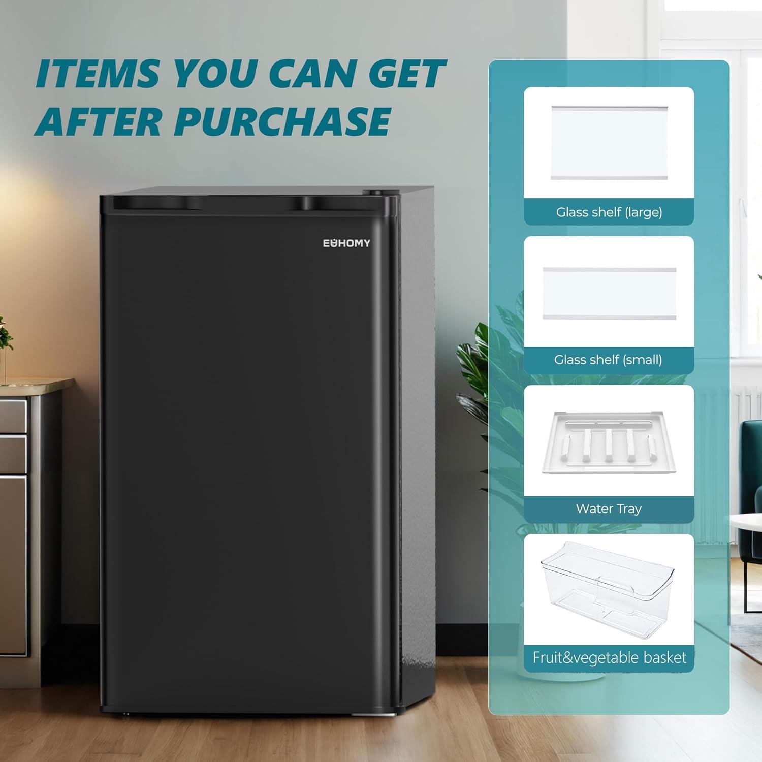 EUHOMY 3.2 Cu.Ft Mini Fridge with Freezer, Single Door Compact Refrigerator, Adjustable Thermostat, Mini Refrigerator Energy Saving, Mini fridge for Bedroom, Dorm, Office, Black(Black)