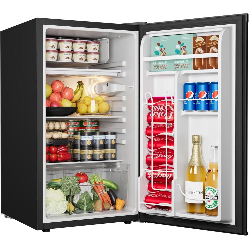 Refrigerator & Micro Freezer – 3.2 Cu.ft large capacity mini fridge with freezer contains 2.9 Cu.ft Refrigeration section (25℉~44℉) and 0.3 Cu.ft micro-freezer section (23℉~41℉). The micro-freezing section of the small refrigerator allows for short-term storage of a variety of meat products and is equipped with a water catch pan underneath for easy defrosting or cleaning when the power is off