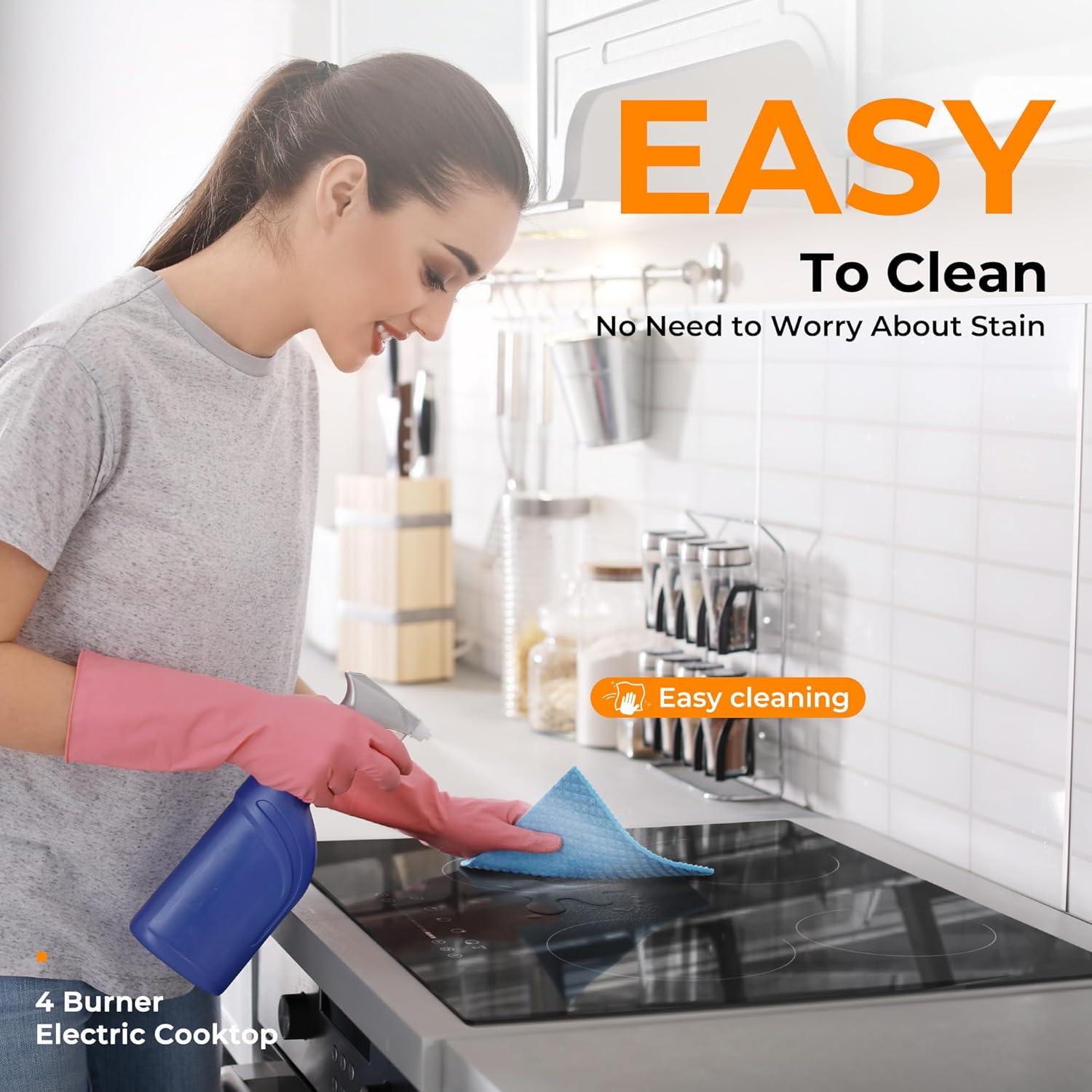 𝟗𝟗-𝐌𝐢𝐧𝐮𝐭𝐞 𝐓𝐢𝐦𝐞𝐫 𝐚𝐧𝐝 𝐀𝐝𝐯𝐚𝐧𝐜𝐞𝐝 𝐒𝐚𝐟𝐞𝐭𝐲 𝐅𝐞𝐚𝐭𝐮𝐫𝐞𝐬: The Euhomy four-burner electric cooktop is designed to deliver both precision and safety, starting with its built-in 99 mintues timer. This feature allows for hands-free cooking—whether simmering, boiling, or warming. And the intelligent residual heat detection light will turns on when any cooking zone remains hot after use, helping to prevent accidental burns. Also the auto-shutoff function offering peace of mind even if you’re away from the kitchen
