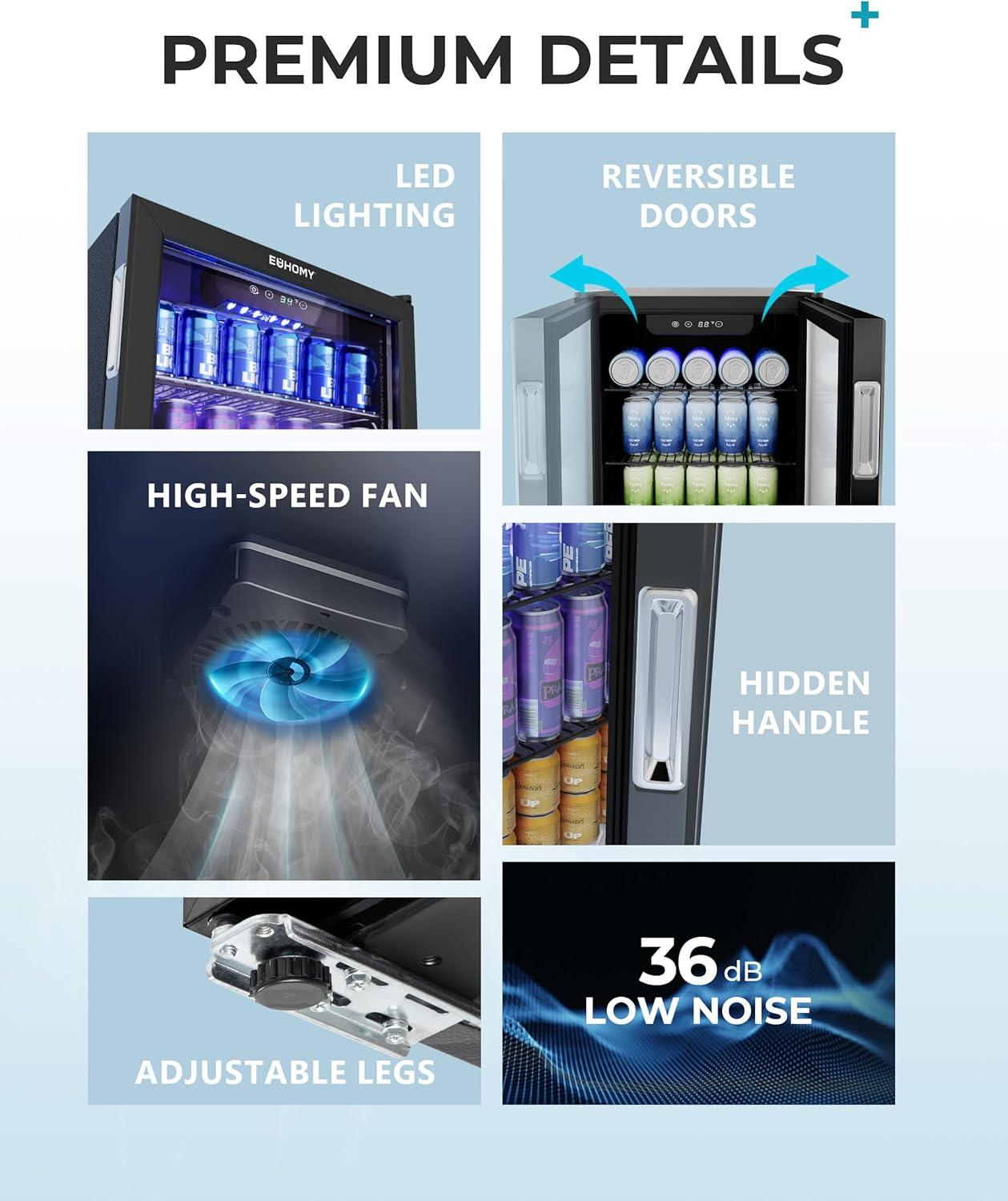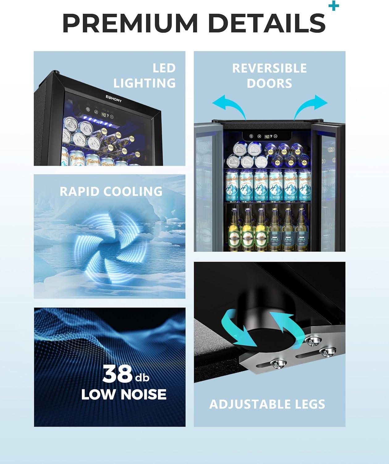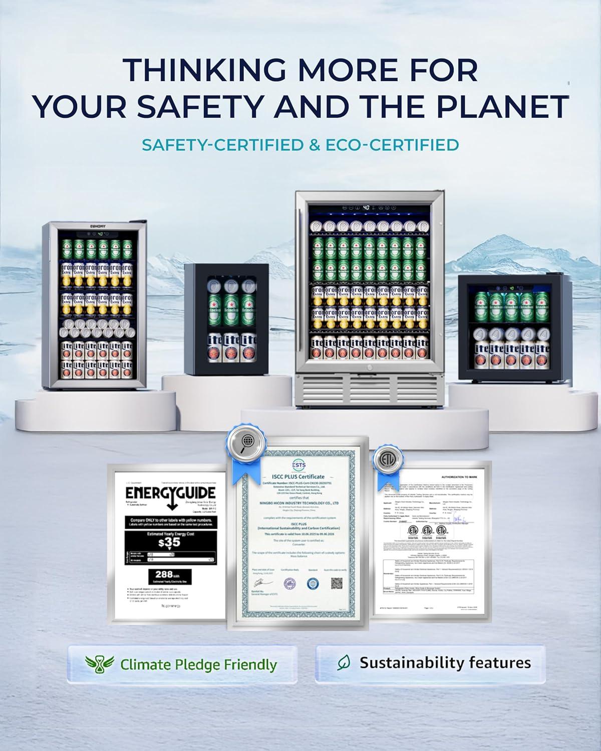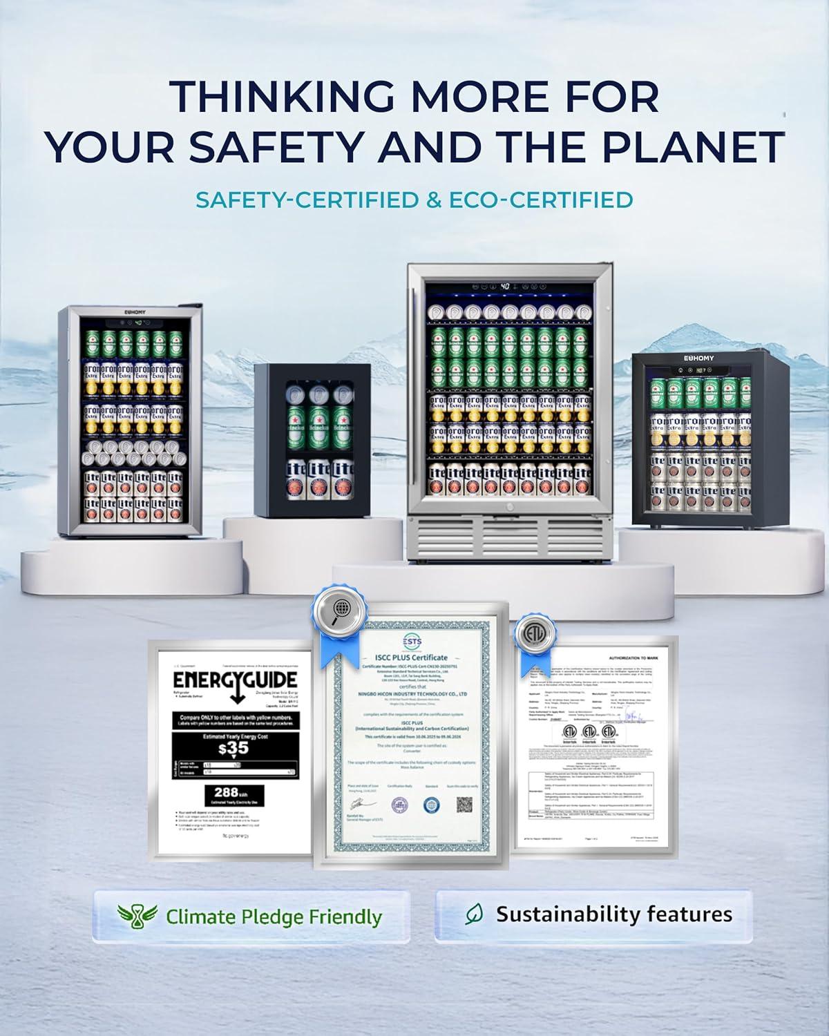 Convincing Quality – EUHOMY drink fridge has an ETL certificate, if there is any quality problem with the product you purchased or you are not satisfied with the product, you can consult our 24 hours online customer service, we provide 12-months product support and professional answers