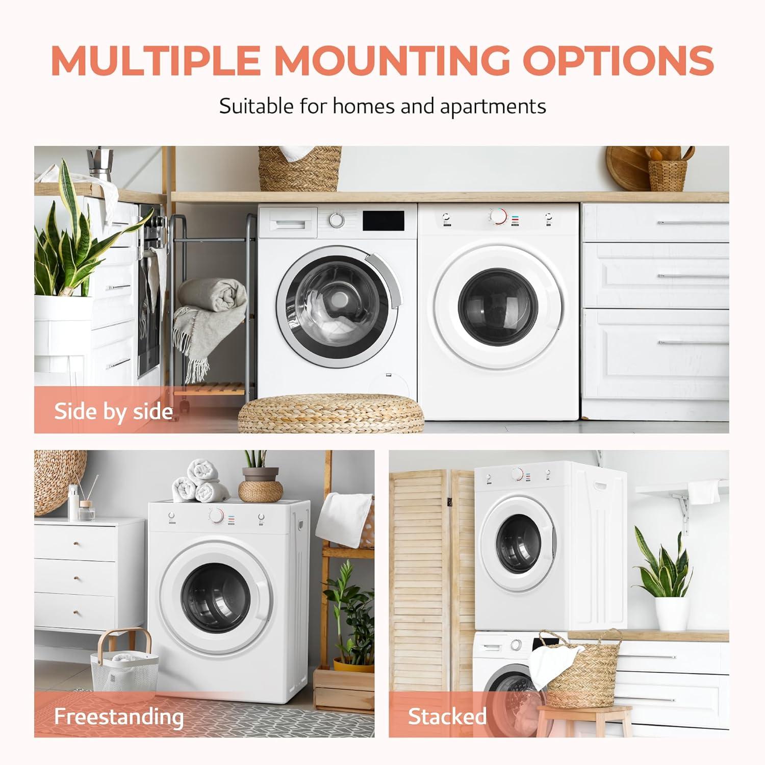 【User Friendly Design】This apartment size dryer for clothes contains 1 dryer, 2 plastic spacers, 2 hanging brackets, 1 exhaust fitting, 1 exhaust pipe, 4 screws 12mm long, 4 screws 25mm long, and an instruction manual.ETL and DOE certifications guarantee the safety and quality of our products. We offer a one-year warranty service.If you have any questions, please feel free to contact us, our professional after-sales team will try their best to solve your problems.