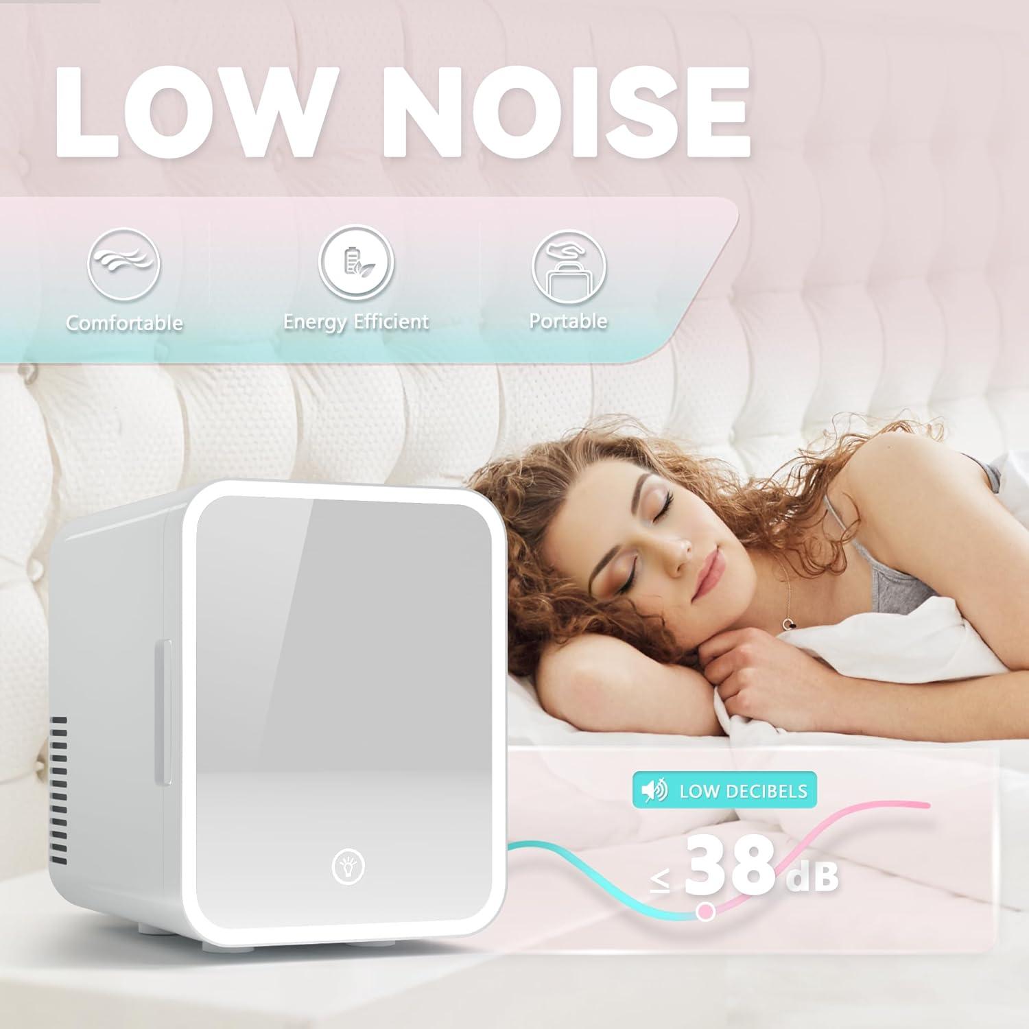 Three-intensity Lighting:This skincare fridge features a touchscreen and a high-definition mirror door, equipped with built-in LED lights that offer three adjustable brightness levels. Whether in bright natural light or a soft lighting environment, this mini makeup fridge provides ideal illumination, helping you achieve the best lighting for skincare and makeup