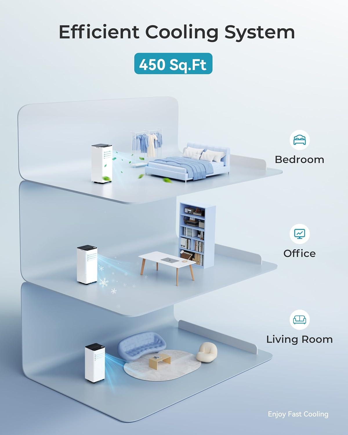 ❄️【𝐓𝐡𝐞 𝐆𝐮𝐚𝐫𝐚𝐧𝐭𝐞𝐞 𝐎𝐟 𝐀 𝐏𝐞𝐚𝐜𝐞𝐟𝐮𝐥 𝐒𝐥𝐞𝐞𝐩】: In sleep mode, this portable AC unit automatically reduces the fan speed to 46 dB to reduce noise and screen brightness. You can also press the light button to turn off the screen display yourself, helping you have a good sleep. At the same time, this AC unit for the bedroom is equipped with a 24-hour timer, which will automatically shut down when the time you set is reached, saving more energy. You can also turn on the air conditioner's automatic swing function for a more comfortable experience