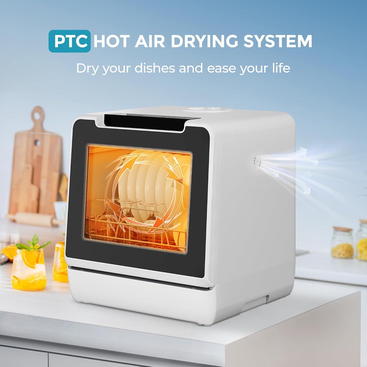 EUHOMY Portable Dishwasher Countertop Dishwashers, 8 Programs Mini Dishwasher, 5L Built-in Water Tank and Inlet hose, Self Clean, Baby Care, Air Dry Function, for Apartments & RVs, No Hookup Needed(8 Programs Black Door)